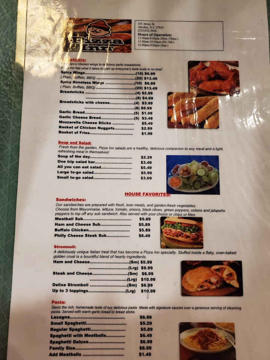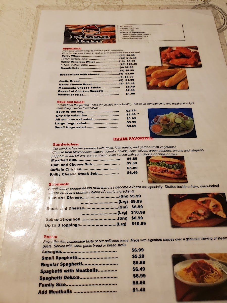Welcome to Pizza Inn Ahoskie, a beloved staple located at 101 Jersey St, Ahoskie, NC. Here, you’ll experience a menu that embodies both value and comfort, perfectly suited for families and friends seeking a delightful meal. Customers rave about the good pizza at great prices, with a solid buffet that invites you to customize your dining experience by choosing the pizzas you want to see on the table.